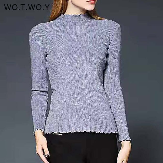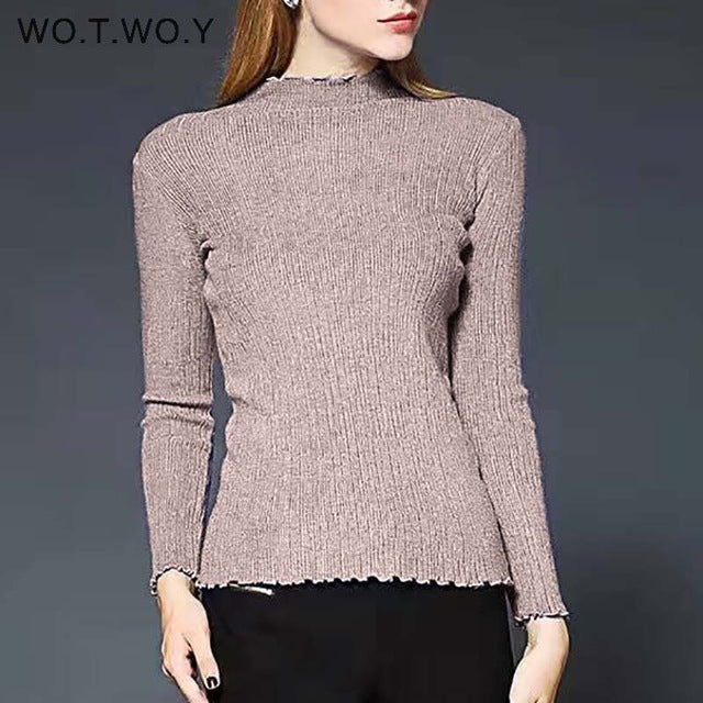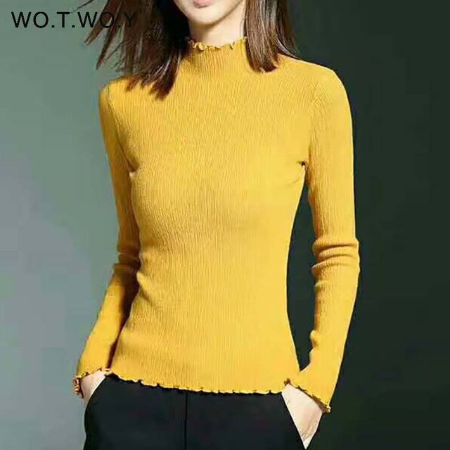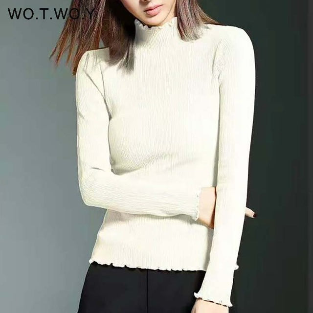 WO.T.WO.Y WOTWOY Long Sleeve Turtleneck Bottoming Solid